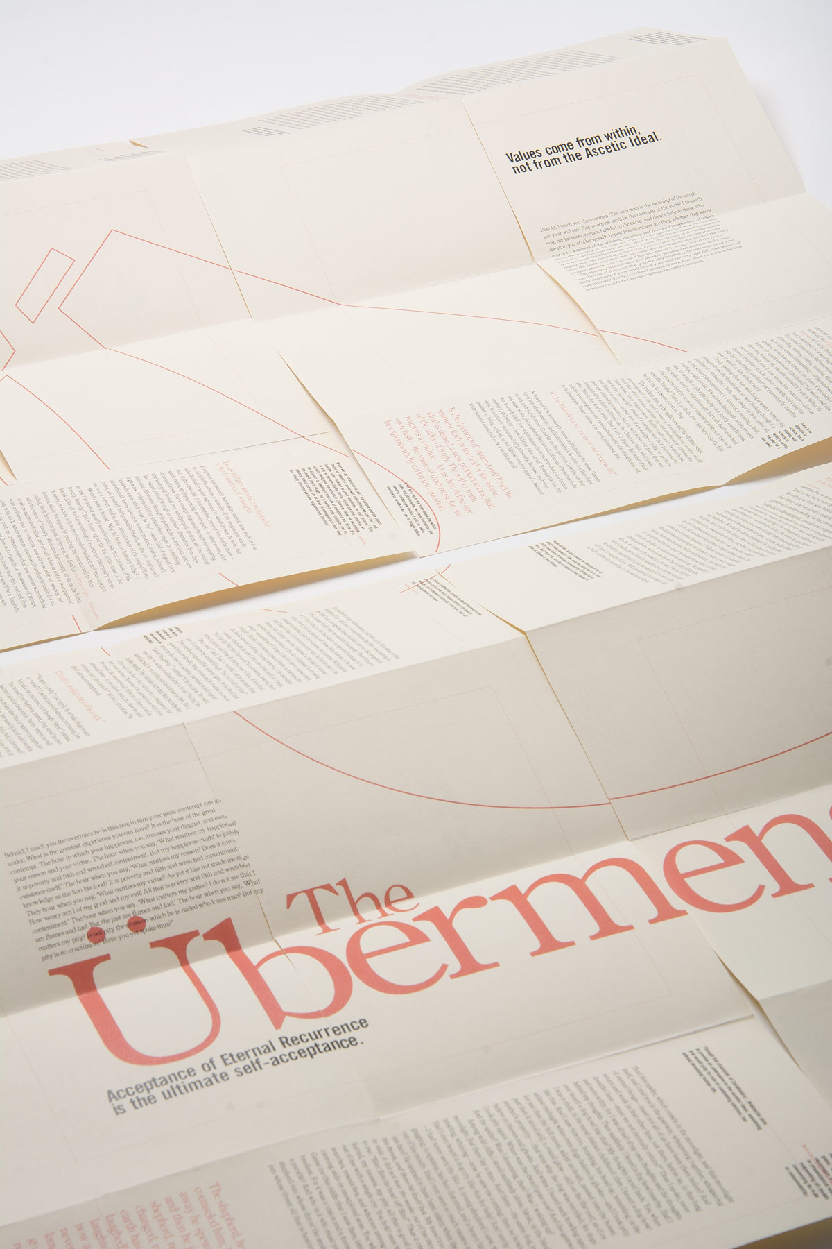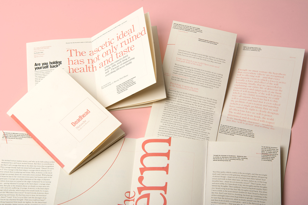 Deadhead is a zine that aims to introduce readers to philosophy. In this case it is four issues on Nietzsche, covering four of his key ideas. The zines unfurl and combine together into a poster to communicate a fifth and overarching idea—the Übermensch (the Superman).
